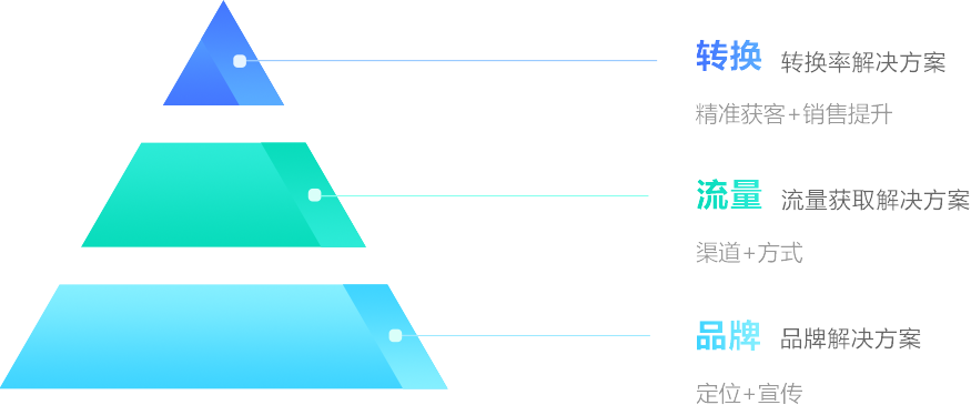 獨創(chuàng)“蝶變”營銷理論,從品牌到流量,再到最終營銷轉換,逐級分析并給出解決方案,完成整體營銷目標。
